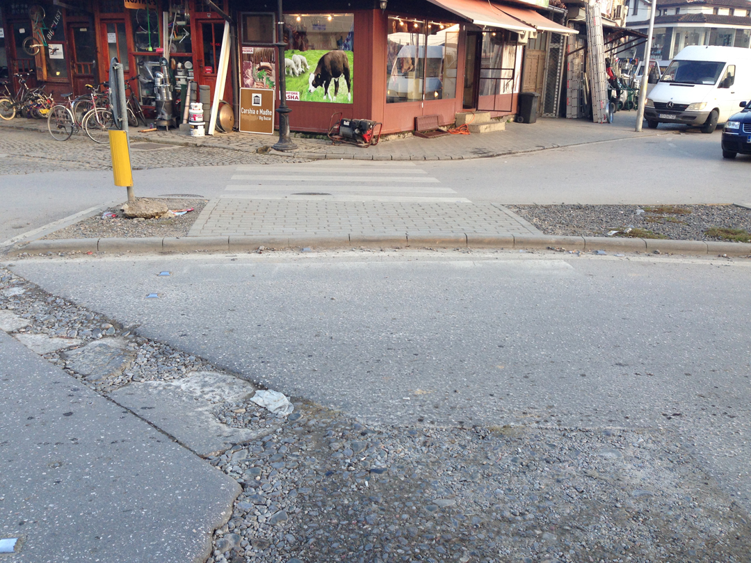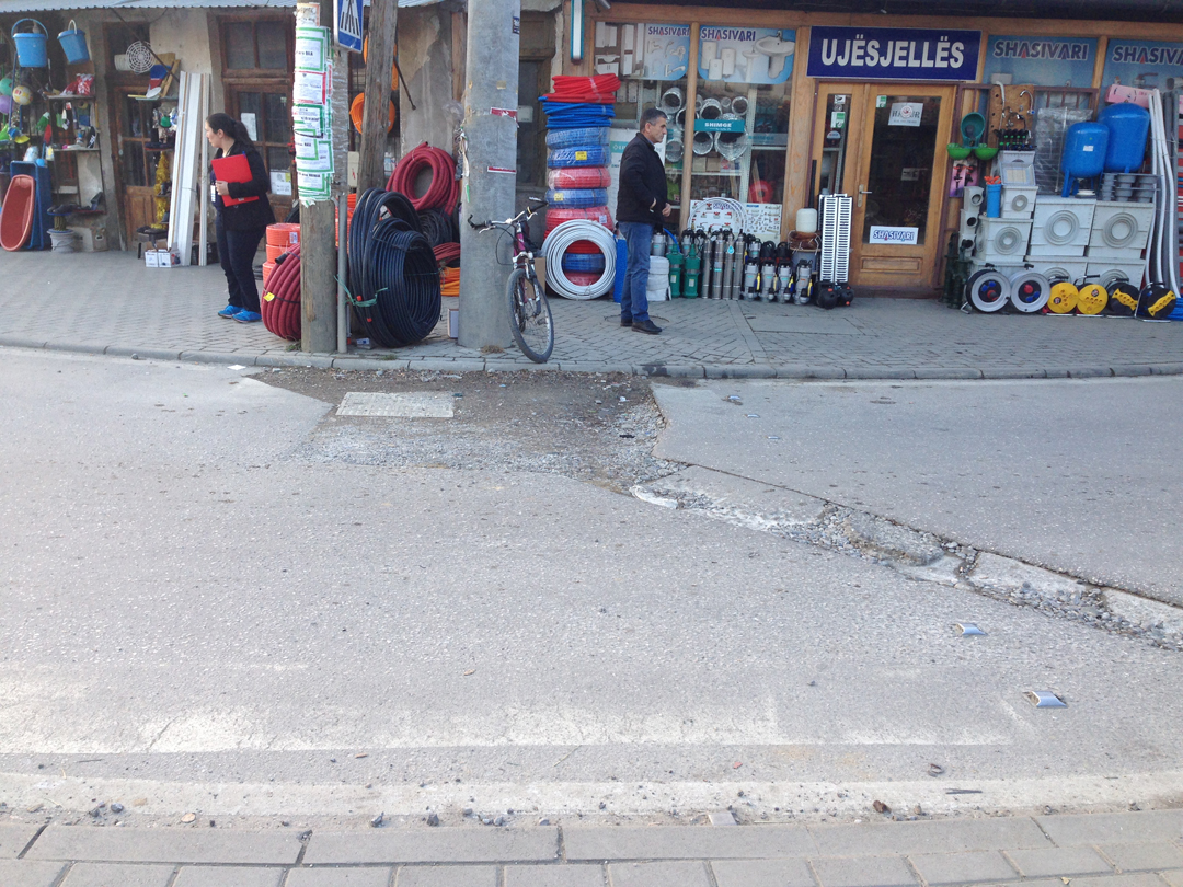 Demtimi i rruges pas punimeve dhe mungesa e vijave te bardha ne vendkalim te kembesoreve. Poashtu ekspozimi i mallerave nga lokalet afariste cenon levizjen e lire ne hapesiren publike